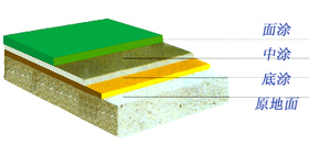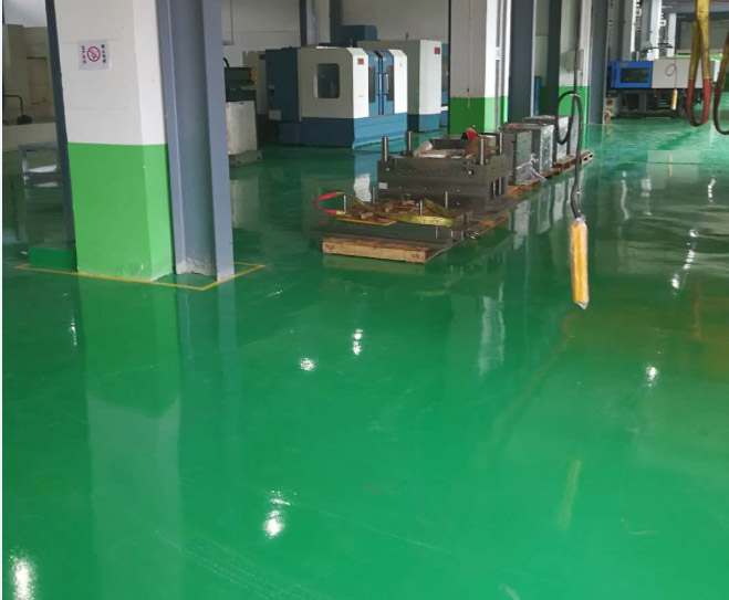 五、施工工艺 1、基面打磨处理 ;对地面实施全面打磨处理、使地面整体平整、清洁为底涂打好基础。2、环氧树脂底涂 ;采用渗透材料和超强的底涂环氧材料对地面实施全面刮涂、增加地面粘接力。 3、着平层 ;用调配好的腻子或石英砂补地面上的坑和凹凸不平处、提高平整度。4、环氧中涂 ;采用高级环氧材料增加地板粘接力。5、环氧批涂 ;提高地板粘接力和平整度为面涂打好基础。6、环氧树脂面涂 ;用滚筒整体滚涂一遍、使之达到光亮洁净、颜色一致无空鼓。